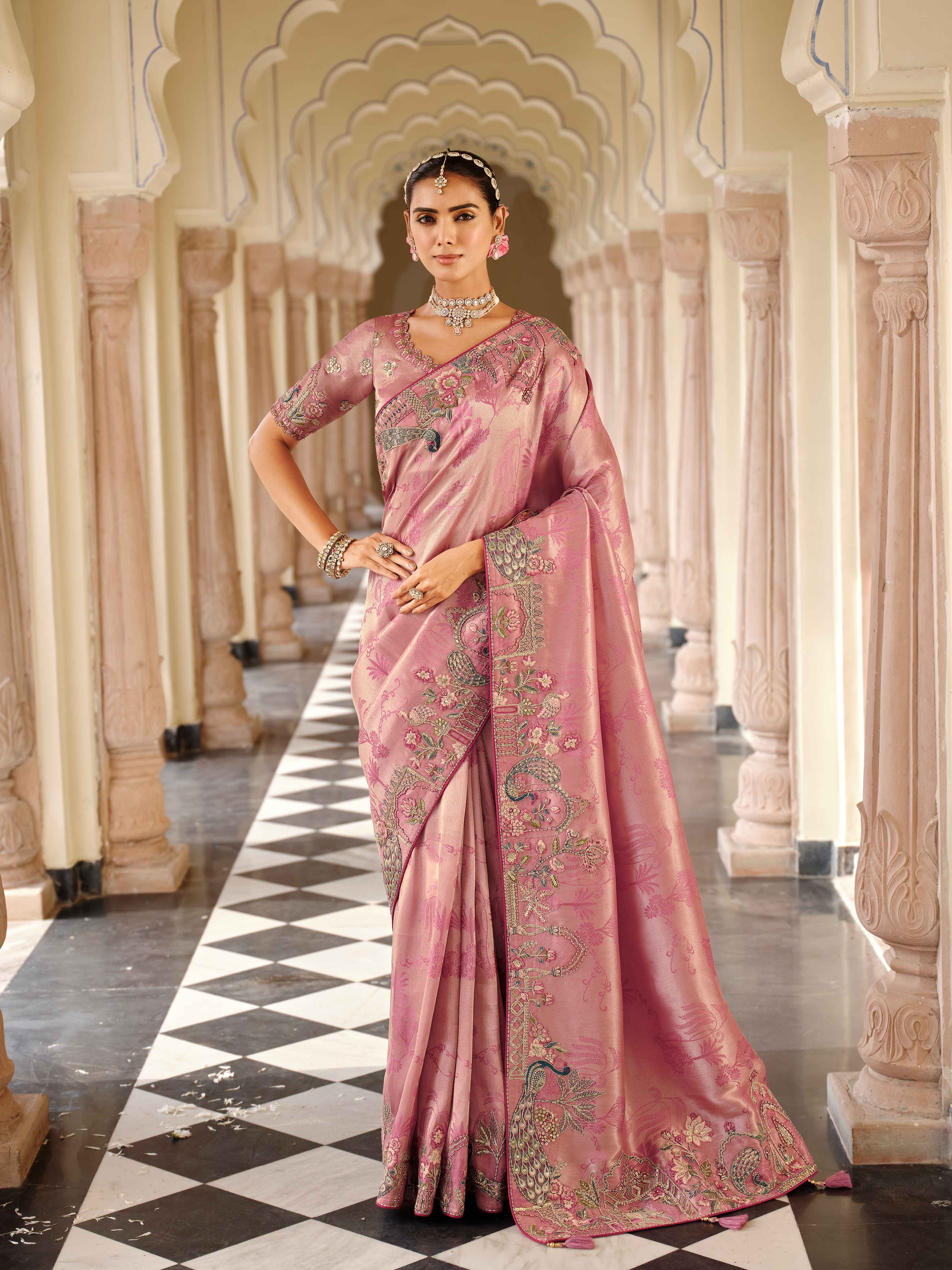 Peach Ziraf Traditional Saree with Silk Blouse & Embroidery Work - 7808