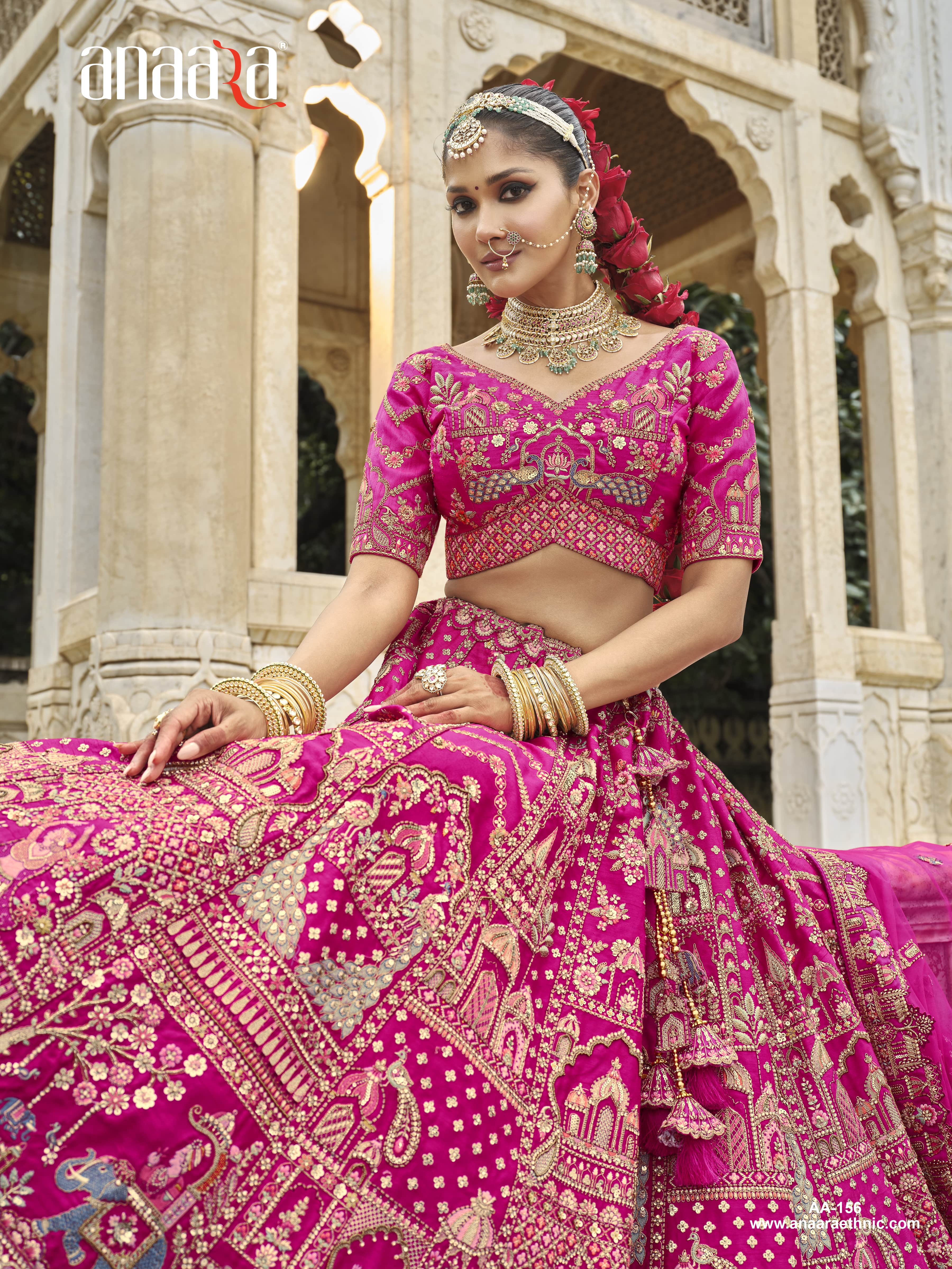 Pink silk bridal lehenga choli with resham and sequins work - AA156