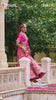 Pretty pink silk comes alive in this unstitched lehenga choli, where sequins, diamond, thread, beads, cutdana, and resham create a glittering dance of artistry. Styled with one flowing net dupatta and an unstitched blouse, it makes the bride appear effortlessly radiant and exquisitely graceful.