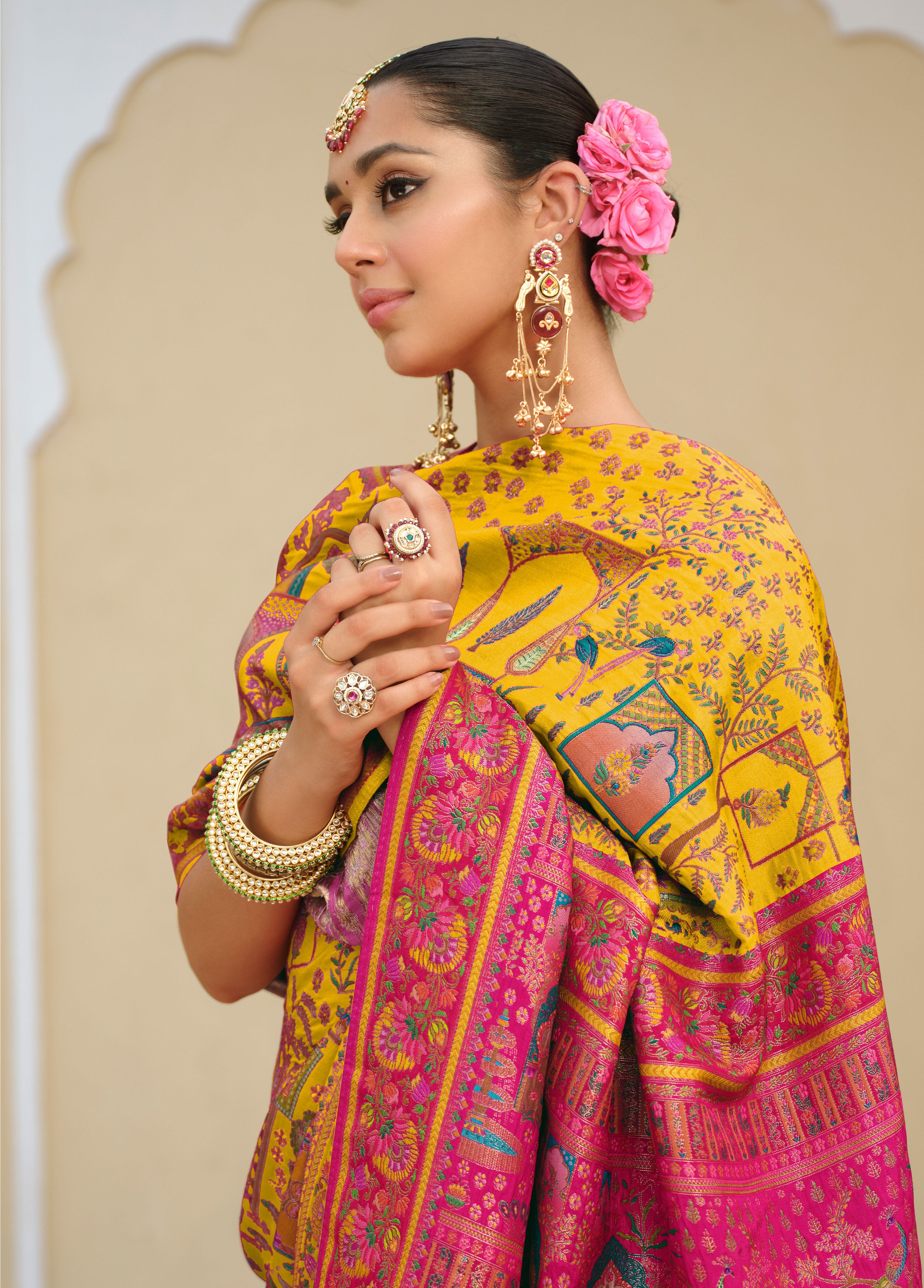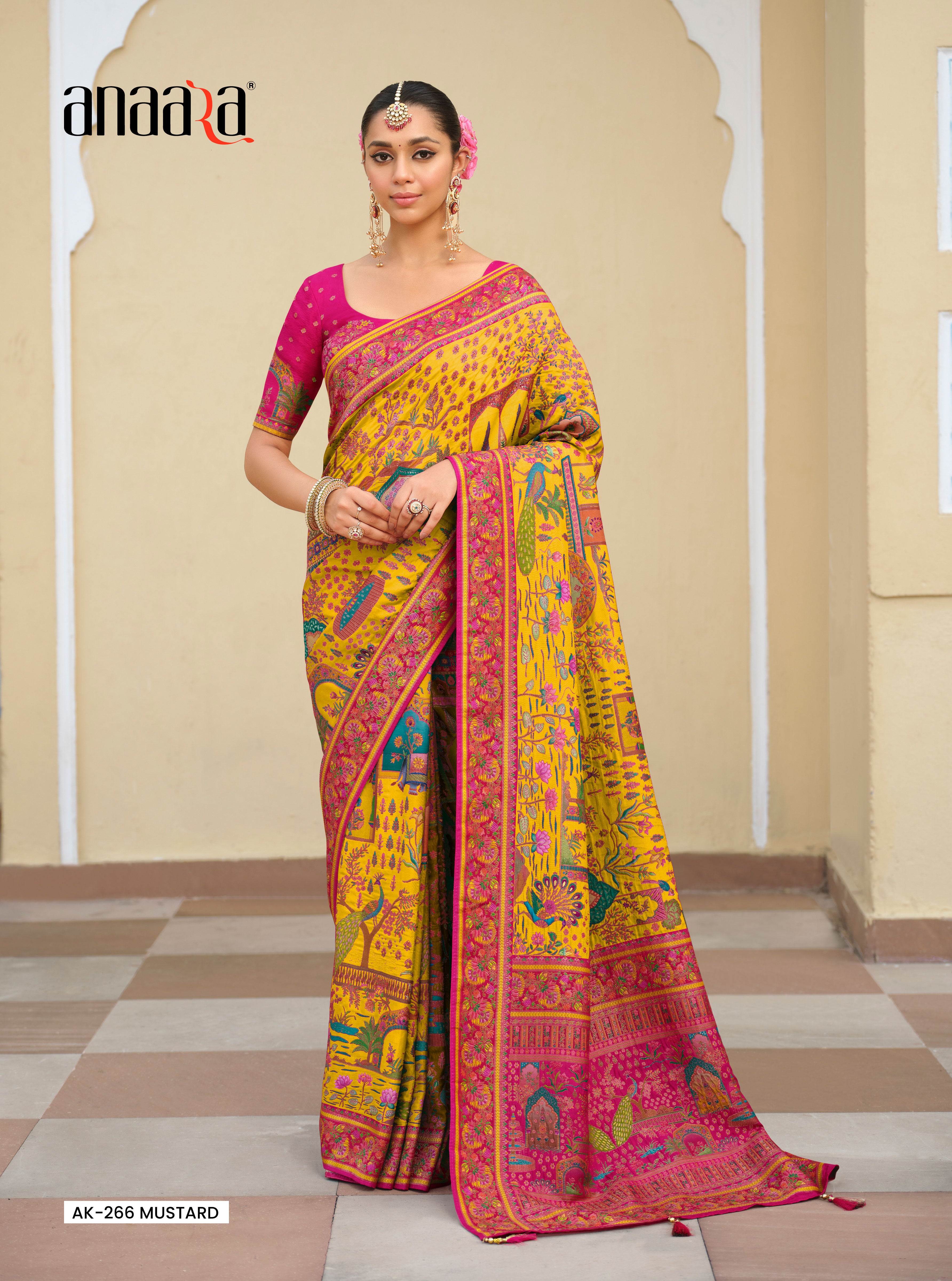 Mustard Yellow Dolla Saree with Rani Pink Blouse – Elegant Position Print - AK-266-MUSTARD