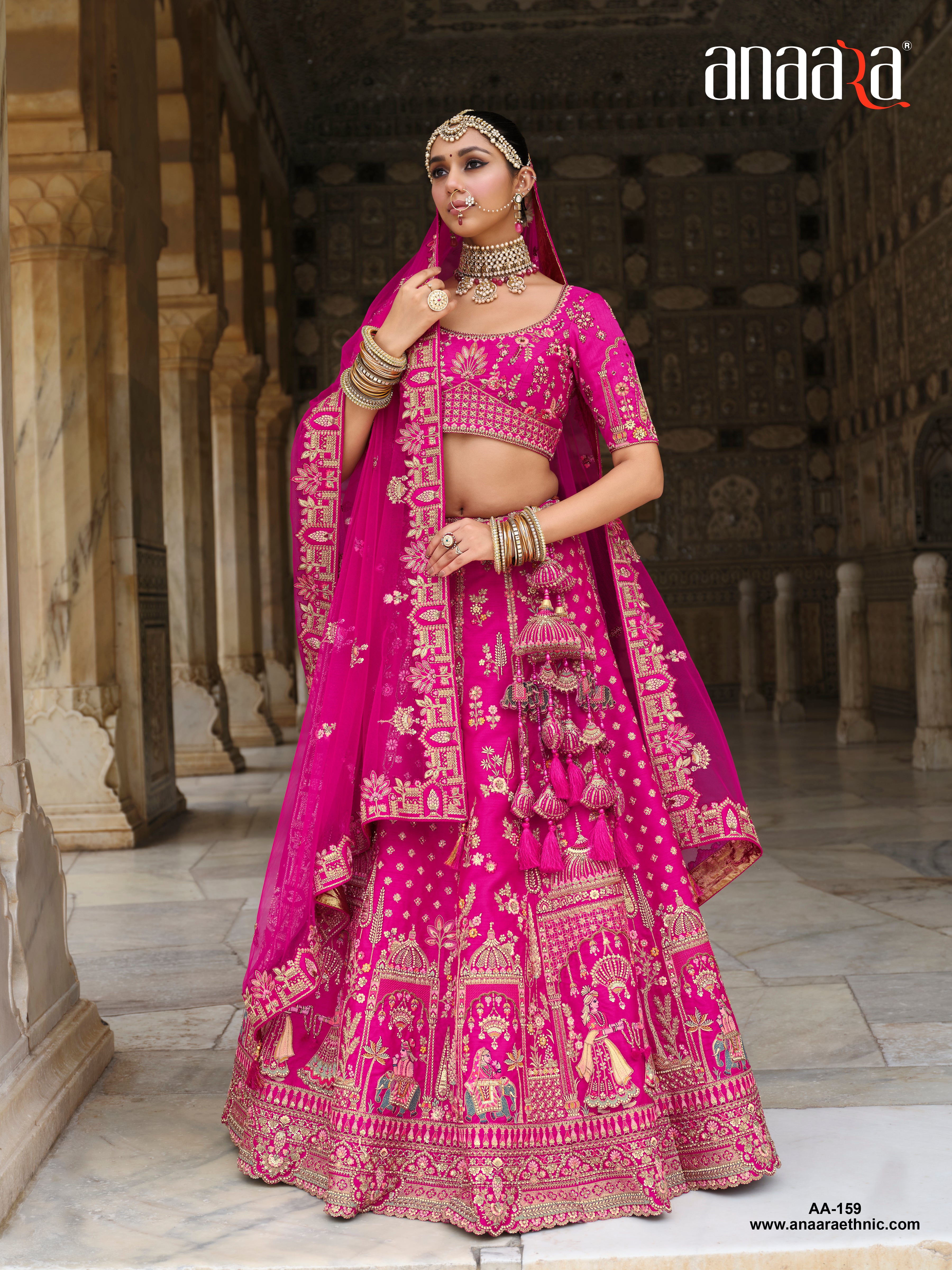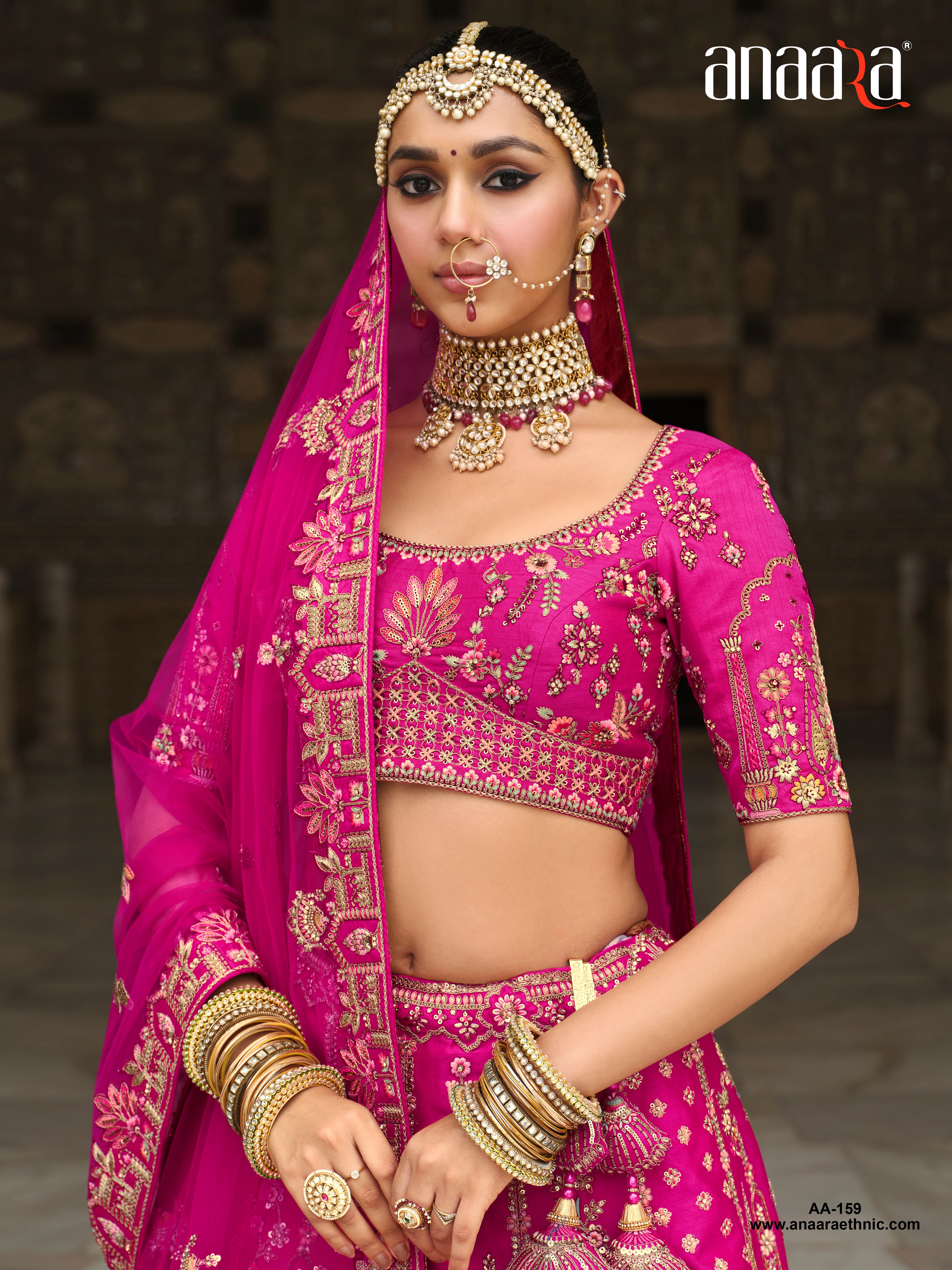 Pink bridal silk lehenga choli with sequins and resham shine - AA159