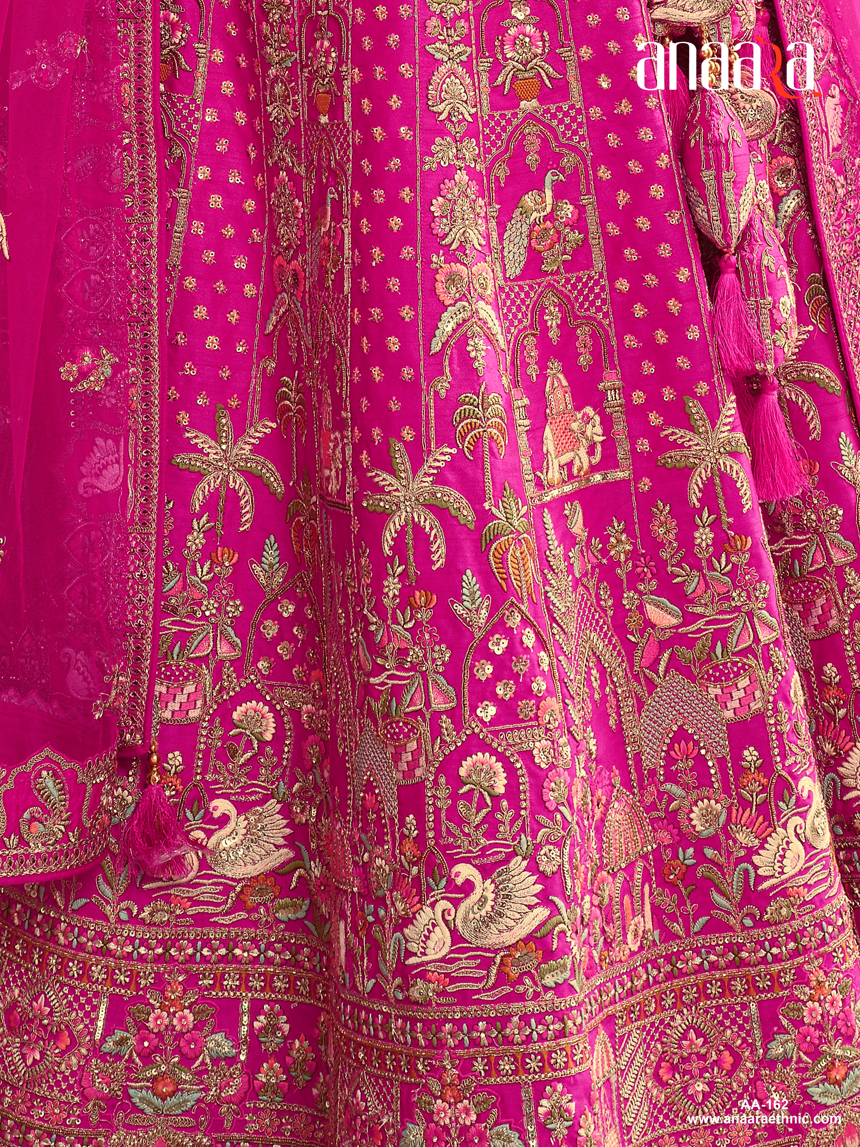 Vibrant Pink Heavy Embroidered Designer Lehenga - AA162